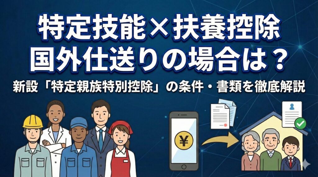 執筆者:Divership編集部|外国人雇用担当部門 特定技能外国人の中には、母国に住む家族へ仕送りをしている方も少なくありません。実は、そのような国外居住の親族も、一定の条件を満たせば「扶養控除」の対象になる可能性があります。 さらに、2025年12月... -