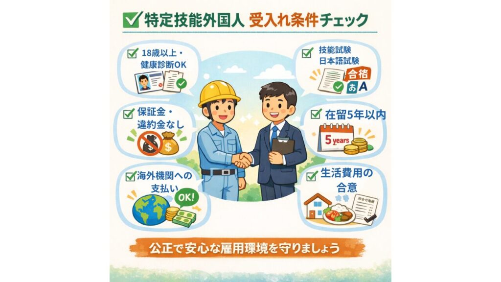 ・欠格事由への非該当:過去5年以内に、出入国法令や労働法令違反がない。