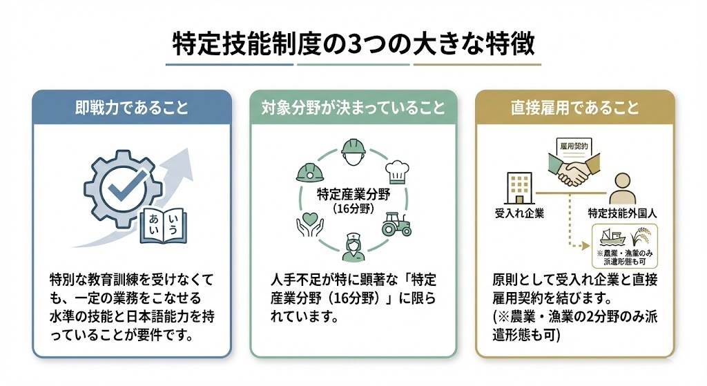 特定技能の大きな特徴は以下の3点です。