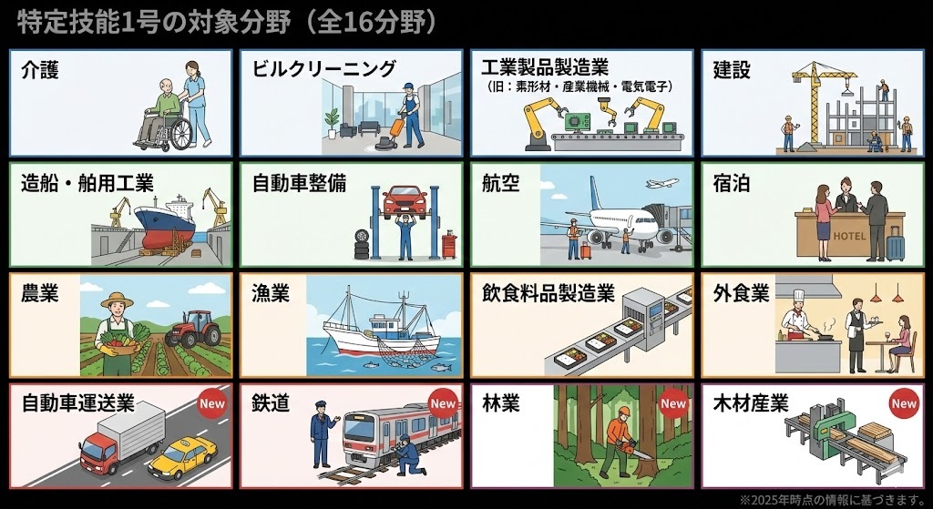 具体的な16分野の職種一覧や詳細は、記事の後半で解説します。