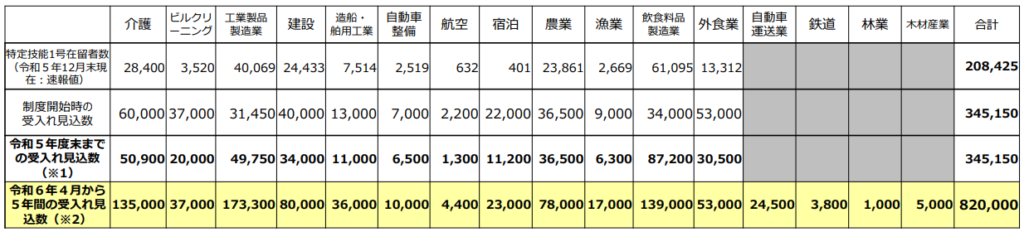 [出典:出入国管理庁 特定技能制度の受入れ見込数の再設定(令和6年3月29日閣議決定)]