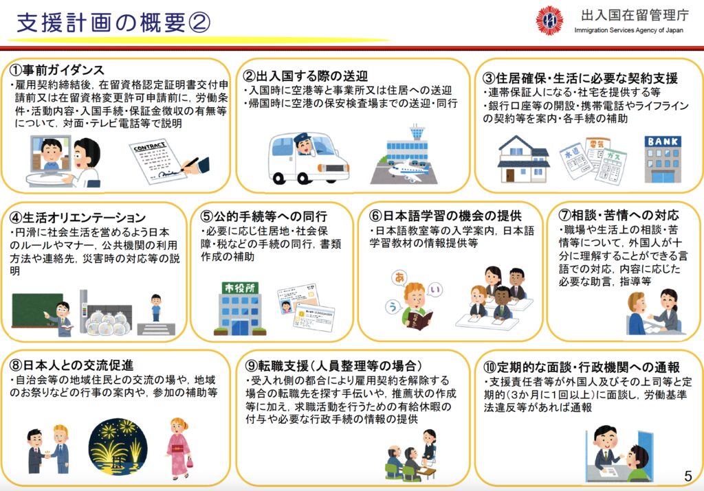 特定技能制度では、外国人が仕事と生活を円滑に行うことができるように、受入れ機関側に支援計画の作成とその実施が義務付けられています。